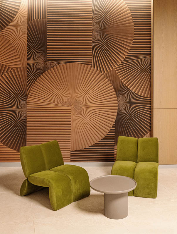 Abstractum02 plays with asymmetry and contrast. Used in the lounge, its fractured forms break up repetition, adding tonal weight and tension, especially when paired with the sculptural seating.